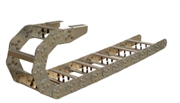 • TL125系列鋼制拖鏈 應(yīng)用在機(jī)床機(jī)械等的電纜、油管、氣管、水管、風(fēng)管上,起牽引和保護(hù)作用?!L系鋼制拖鏈的主體是由鏈扳(優(yōu)質(zhì)鋼板鍍鉻)支撐扳(擠拉鋁合金)軸銷(合金鋼)等部件組成,使電纜或橡膠管與拖鏈之間不產(chǎn)生相對(duì)運(yùn)動(dòng),不產(chǎn)生扭曲