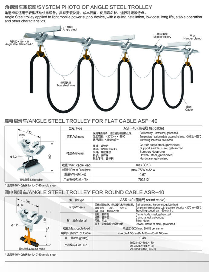 電纜滑車是一種理想的物流供電系統(tǒng),根據(jù)其軌道的不同可分為C型軌電纜車和H型軌電纜滑車兩種。該系統(tǒng)對(duì)環(huán)境的要求比較低,運(yùn)行平穩(wěn)且不產(chǎn)生火花,在室內(nèi)、室外、多塵、多灰及溫差較大的場(chǎng)所均能正常工作。