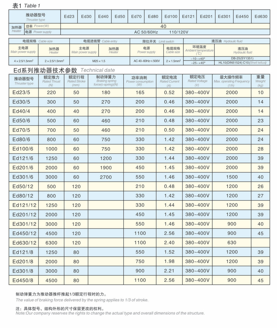 ED系列電力液壓推動器是集電機(jī)、離心泵、油缸為一體,結(jié)構(gòu)非常緊湊的驅(qū)動控制裝置,被廣泛用作各種鼓式制動器和盤式制動器的驅(qū)動裝置,還可用于各種工業(yè)閥門、閘門、定向擺動和轉(zhuǎn)動(<90°)裝置(機(jī)構(gòu))及夾緊裝置的驅(qū)動裝置。