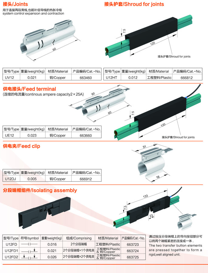C型M型Ω 型小功率銅質滑線為單極制作,多極組裝,具有以下特點:密集組合(極間距小,任意組合,安裝可達20多根);敷設方便(整體組裝,可懸掛、附著、水平、垂直按需隨意靈活敷設);彎曲靈活(彎曲半徑可達50cm,可隨軌首任意彎曲,無需特意制成弧形,適用于立體倉庫、電動小車、各類自動化流水線、檢測線等)。