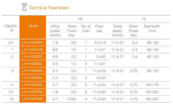 LH-KM single speed low headroom electric chain hoist