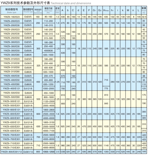 l Lining-wear limit-switch, equipped which signals will shown when wear of lining reaches the limit (note: self-compensation device should be equipped in application)