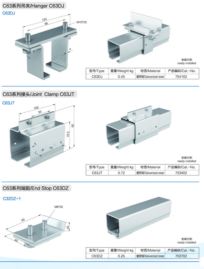 材質(zhì)/Material | Galvanized steel/鍍鋅鋼(熱鍍鋅處理,C63系列外) | |||