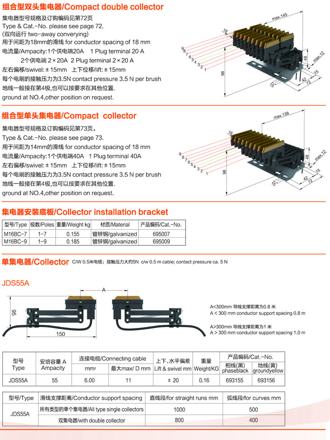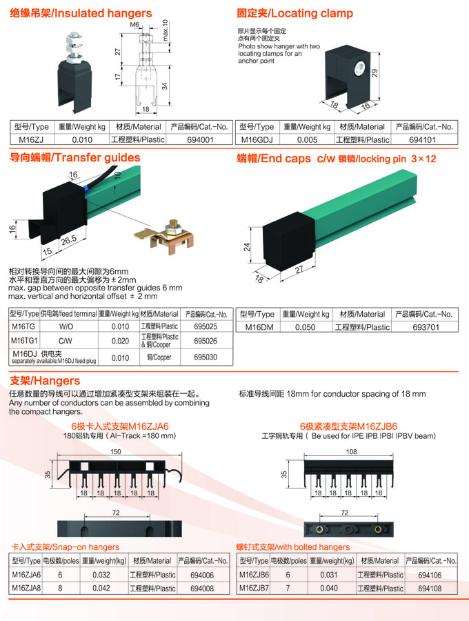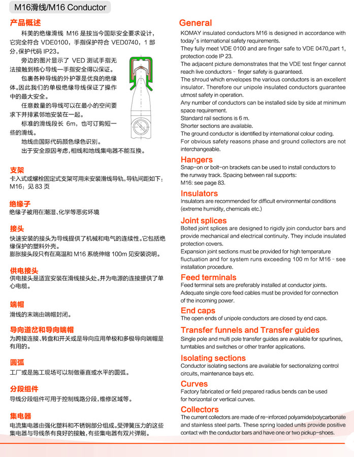Description:Multipole conductor rais contail several poles in a flat common plastic housing. They are used for energy and data sypply on straight configurations, for indoor and weather protected outdoor applications.